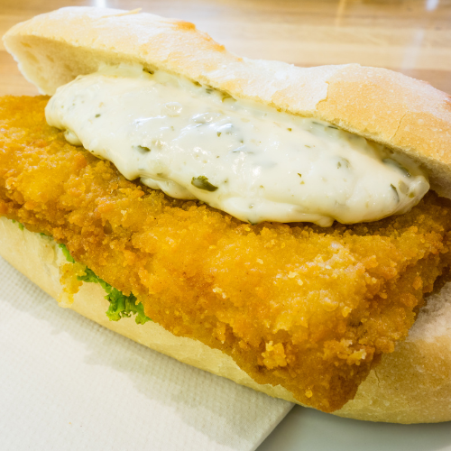 White Bun, Coleslaw, Fries, Potatoe Salad, Baked Beans. Add Onion Rings $0.50